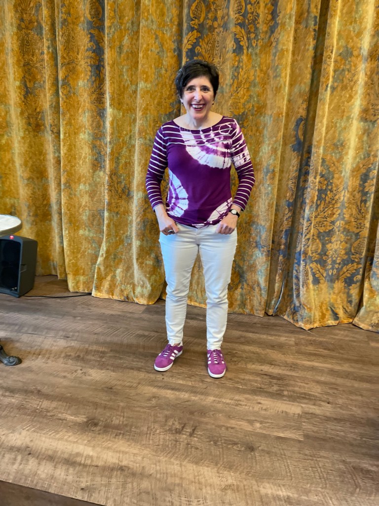 The photo was taken after my 58th birthday. See: the royal purple Adidas Gazelles I’m wearing. Wherever I go people comment that they love those sneakers.