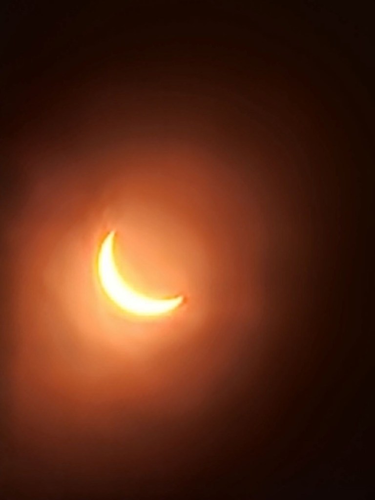 This is how the eclipse appeared through the glasses. Another solar eclipse will come around in 21 years. I’ll be 79 then.