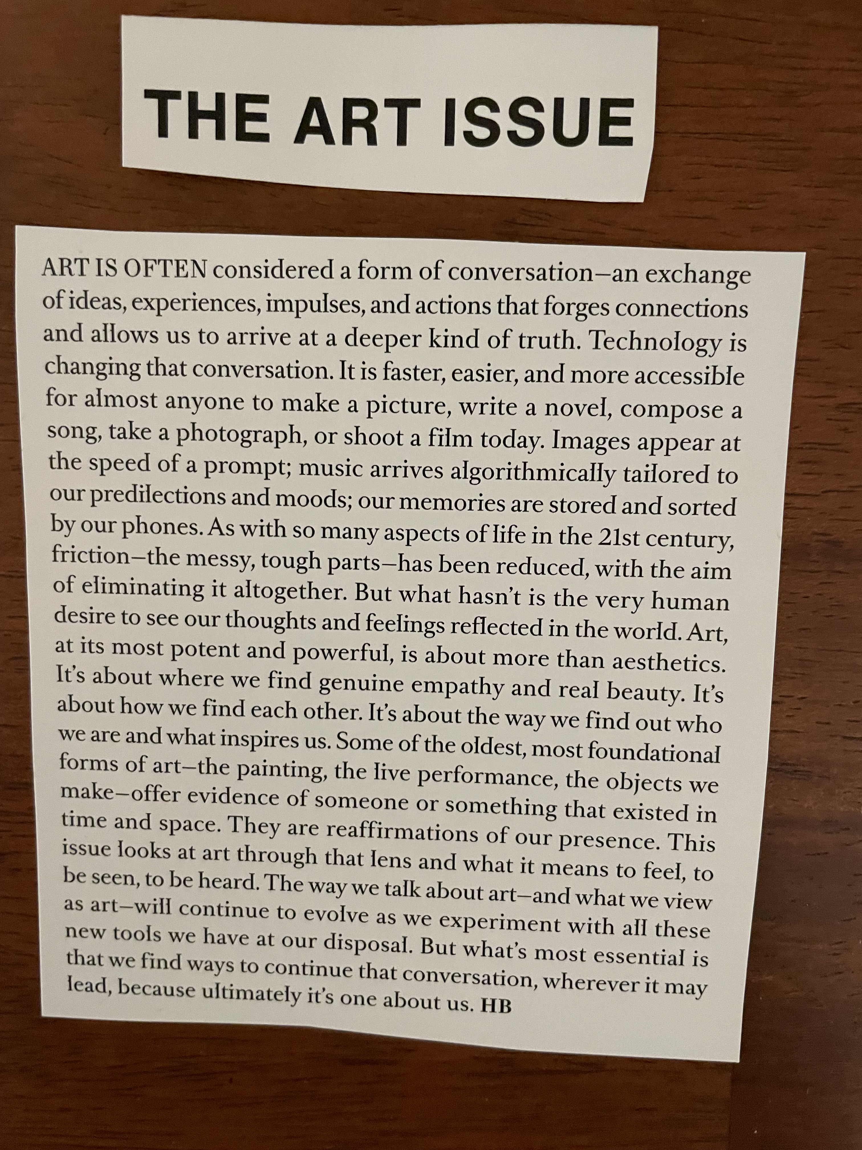The image is a photo of Harper's Bazaar Art issue theme.