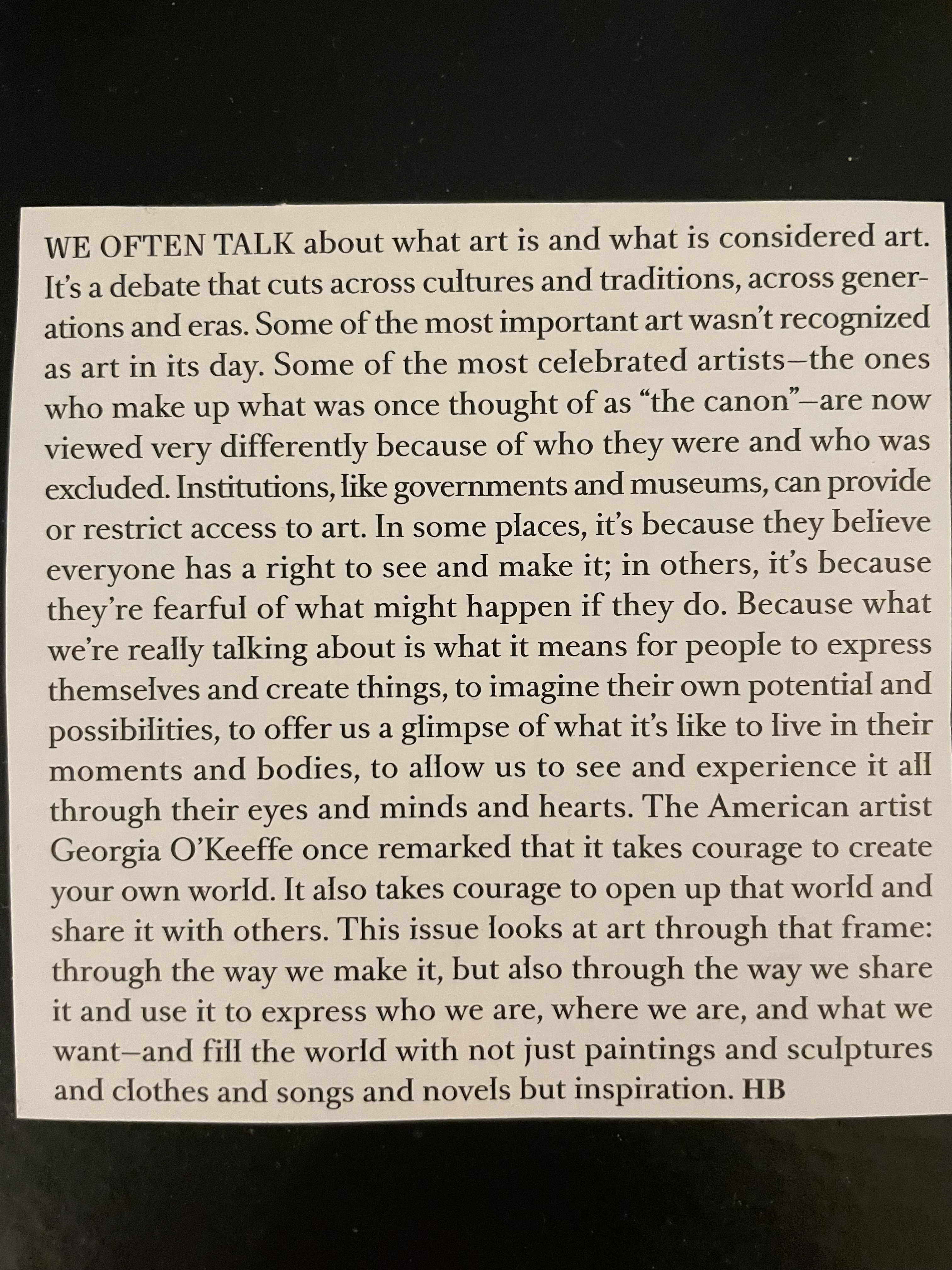 I quote this in the hopes you’ll go out and buy a copy of the magazine.